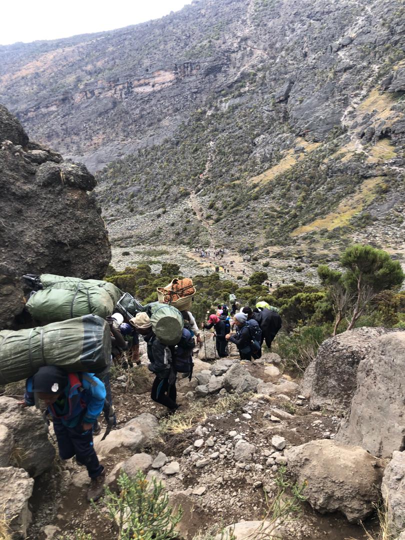 Machame Camp (2835m) to Shira Camp (3750), distance is about 5 km