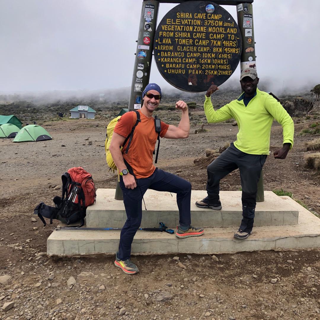 Shira Camp (3750m) to Barranco Camp (3900m), distance is about 10km.